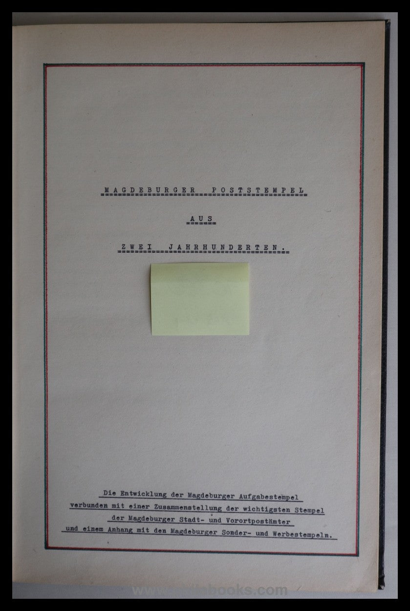 MAGDEBURG: Freye, W.: Magdeburger Poststempel aus zwei Jahrhundert ...
