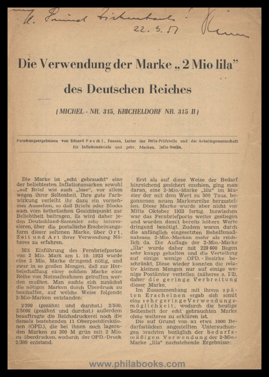 Peschl, E., Die Verwendung der Marke '2 Mio lila' des Deutschen Re ...