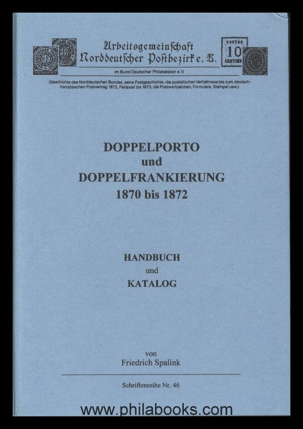 Spalink, F., Double postage and double franking 1870 to 1872 - Handbook and catalogue, 334 pages, hardcover, with 200 document illustrations, 1999, divided into 7 periods, all stamps, franking and document types that occur within the framework of the double postage system are covered. With some evaluation information. Very well preserved! #102075