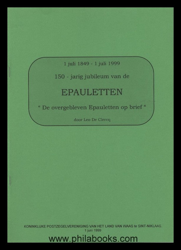 De Clercq, L., jarig jubileum van de Epauletten 'De overgebleven Epauletten op brief' 1 july 1849 - 1 July 1999, 1999, 44 p., A4, letters of the 1st edition from Belgium ('Epauletten)' from the de Clercq collection with description #102362