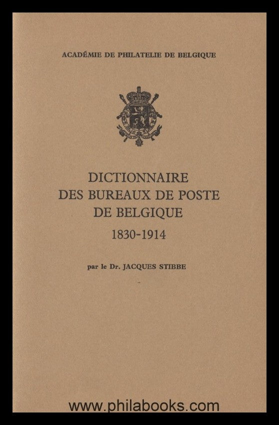 Stibbe, Dr. J., Dictionnaire des Bureaux de Poste de Belgique 1830-1914, 1969, List of post offices 1830-1914, 186 pp., well preserved #102378