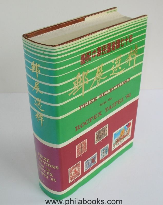 1981, Rocpex Taipei '81, Prize Selections, the rarest philatelic pieces from all of China from the exhibition at the Rocpex, generously illustrated on 340 pages in color with English descriptions, in a similar manner on 110 pages 'international rarities', then 90 pages Chinese text and 170 pages English text, total 709 pages, linen, impressive folio in imitation leather, (3 kg!), here a very good copy, without the frequently occurring binding defects, interesting reference work for old China! #26602