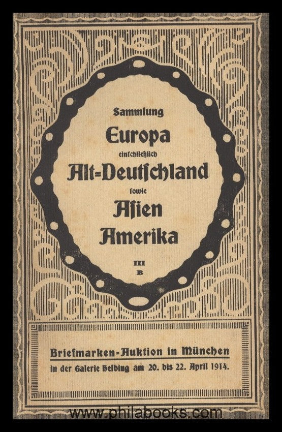 Kunsthandlung Helbing, collection Europe including Old Germany and Asia, America, 20.04.1914, 1912 lots with about 150 stamp images in the text section, early, rare catalog of the stamp auctions that began in Munich in 1914 in collaboration with Paul Kohl, Chemnitz, slight paper stains, otherwise in good condition, with ex libris Bassermann-Jordan #37477