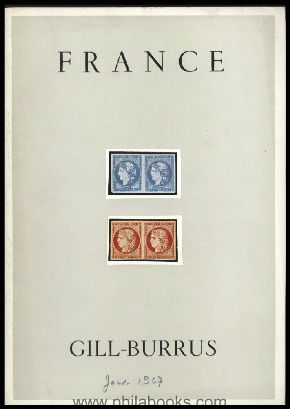Burrus-Gill Collection France, special auction part I (of II) Robineau/ Behr, Paris 26./27.01.1967, France Classic, including units and documents, 404 lots, with numerous illustrations in the catalog section and in the separately issued photo section with 22 plates, good copy with EL, cover inscribed 'Janv. 1967', General Robert Gill had acquired important parts of the Burrus France collection a few years earlier, some of which were originally part of the Ferrari collection #38360