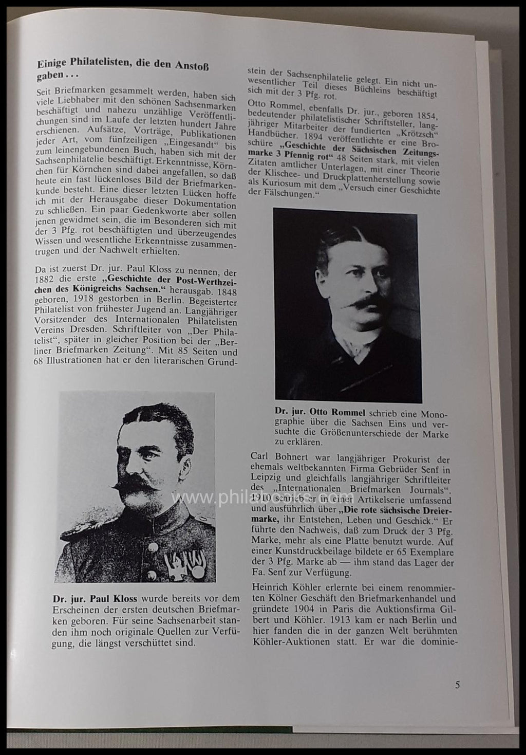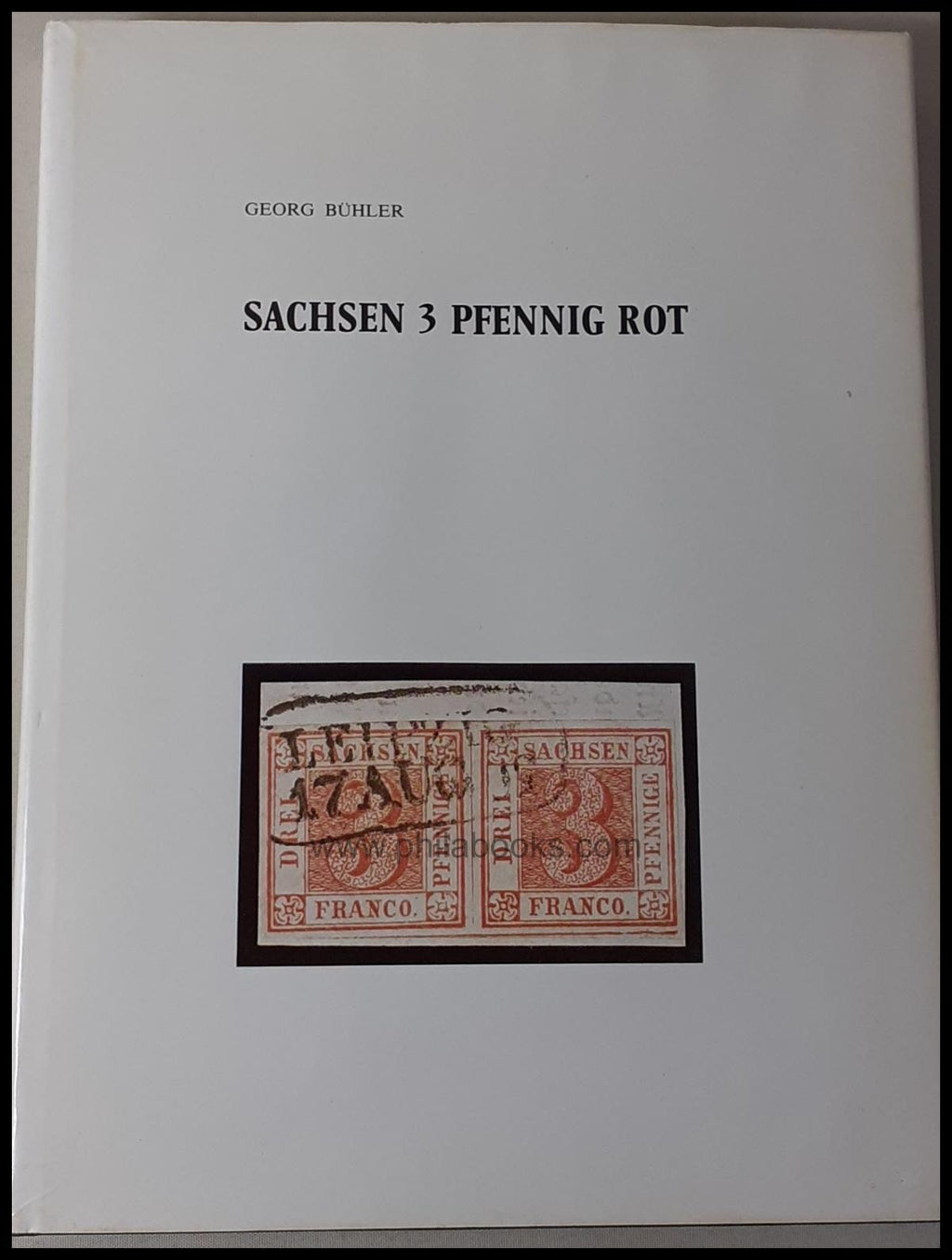 Bühler, G., Saxony 3 Pfennig red, 1978, detailed monograph and plating manual of this popular Old Germany stamp with many enlarged images and with marked plate features, forgeries, etc., 226 pages, limited edition of 500 copies, here Ex. 366 of the popular Old Germany classic, only offered more rarely, slight edge toning and other slight signs of age and wear #38369
