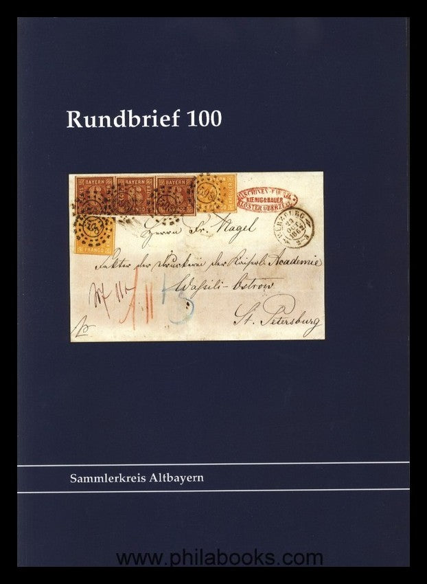 Collectors' Circle of Old Bavaria, newsletter 100, 1996, with various contributions to the postal history of Bavaria, including the transatlantic correspondence 'JW Goering' Ludwigshafen-Canada by DW Kuehner, art paper, 79 pages with some coloured illustrations, numbered, small edition, here copy '12', cover with small defects, sought-after issue #38456