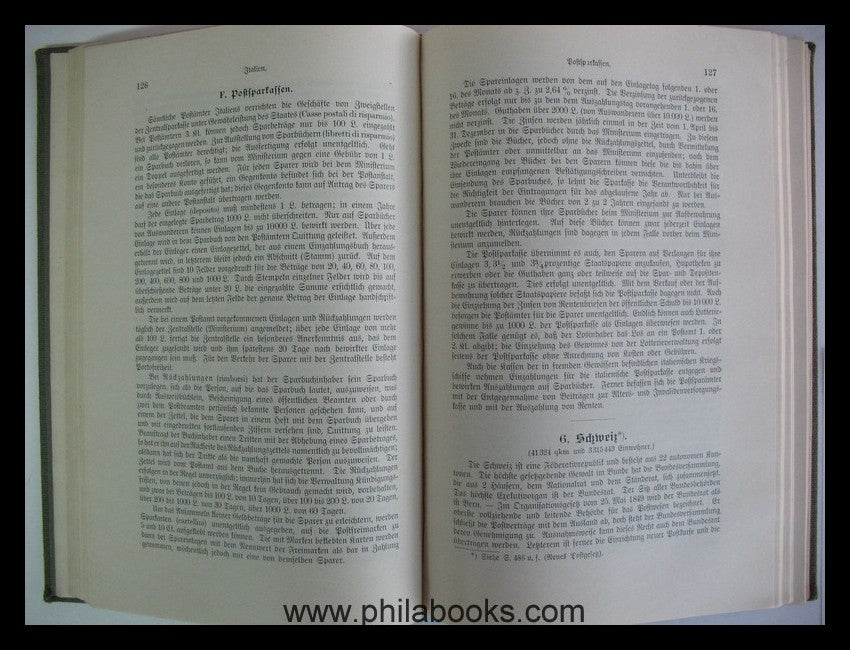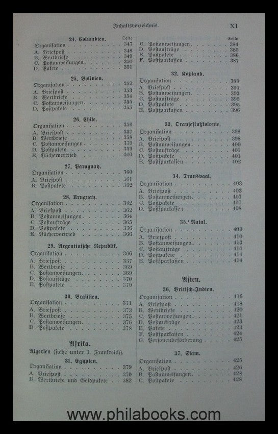 Sieblist, O., The Post Abroad, A Representation of the Postal Institutions of Foreign Countries, 4th enlarged edition, 1909, 487 pages, green all-linen with embossed spine, well-known good reference work and classic of international postal history, with postal regulations, shipping methods, fees etc. of many countries, see scans, slight signs of age and wear, firm binding, well preserved, rarely offered, last edition! #38483