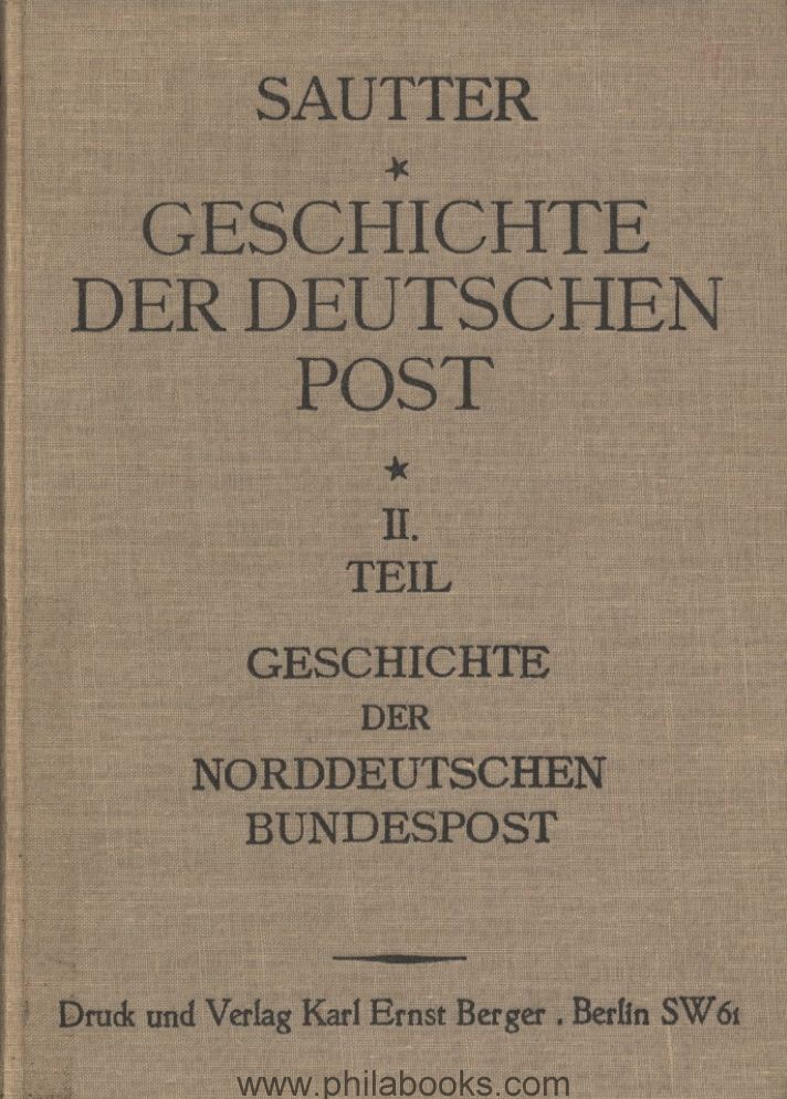 Sautter, K., History of the German Post Office, Part II, History of the North German Federal Post Office 1868-1871, original edition 1935, linen with embossing, ex library of the Munich General Post Office, minor signs of age and wear, well preserved, rarest volume in the series! #38965