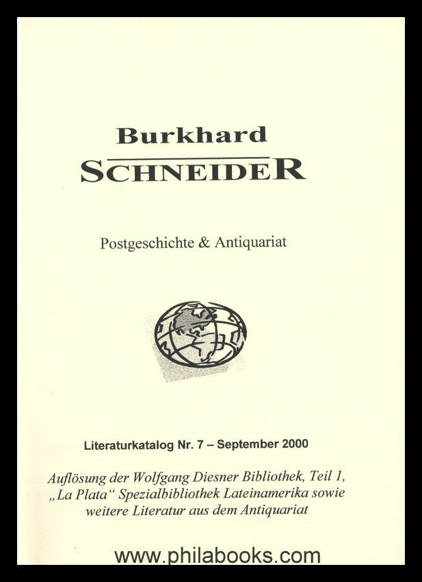 Schneider, Burkhard Postal History & Antiquariat, Literature Offer No. 7 - September 2000, Dissolution of the Wolfgang Diesner Library, Part 1, as well as the 'La Plata' Special Library for Latin America, etc., 56 p., #40097