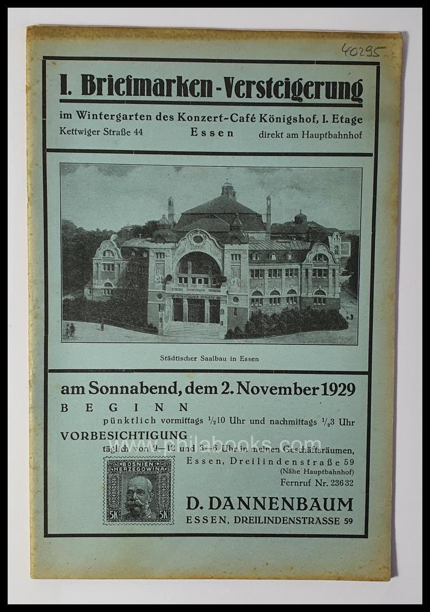 Dannenbaum, Essen, 1st stamp auction, 2.11.1929, complete with photo plates, slight browning, rarer catalog! #40295
