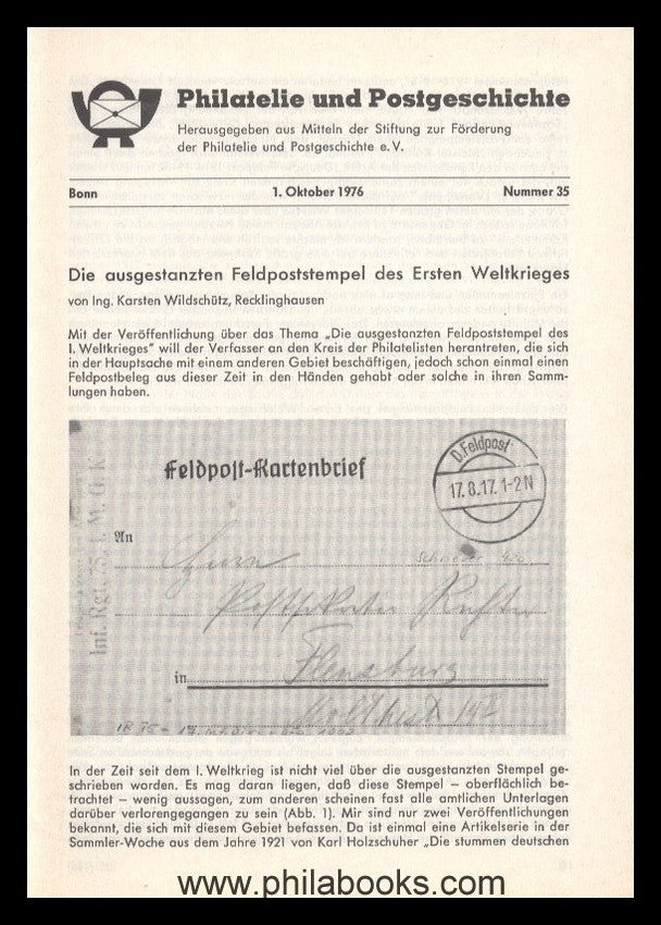 Philately and Postal History No. 35, Wildschütz: The punched field postmarks of the First World War and Apelt, Censorship in Austria from 1945 to 1953, #42130