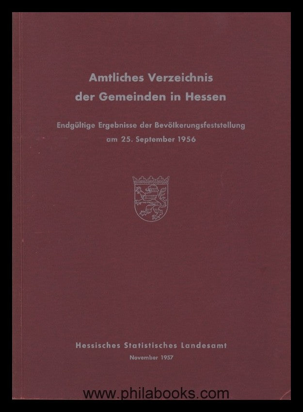 Hessian State Statistical Office (ed.), Official List of Municipalities in Hesse, Final Results of the Population Determination on September 25, 1956, 1957, 174 pp., also contains information on the districts and residential areas #43809