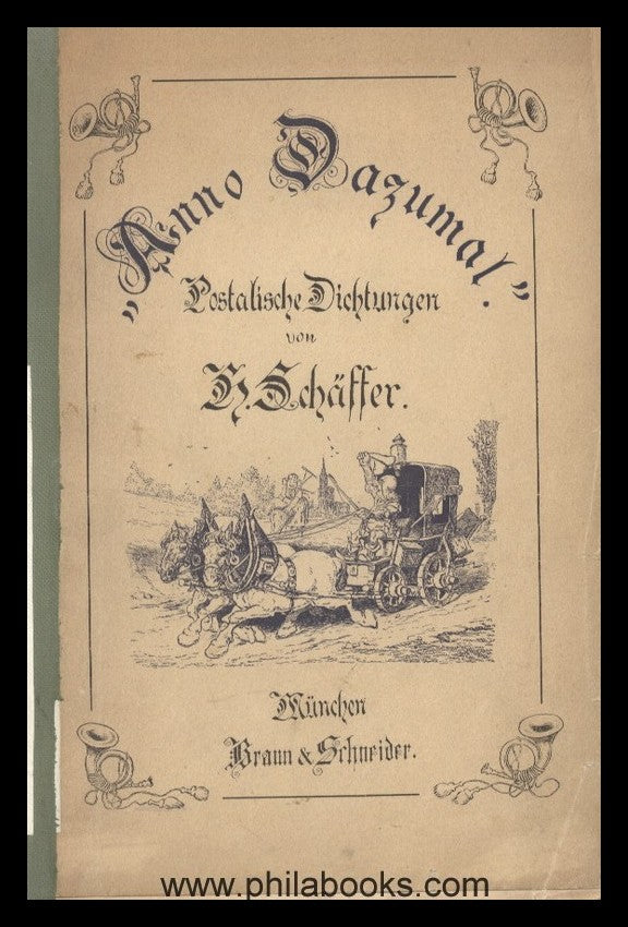 Schäffer, H., 'Anno Dazumal', Postal Poetry, illustrated after sketches by the author by Emil Reinicke, Braun & Schneider, Munich, n.d. (ca. 1890), 68 pages with numerous humorous illustrations, binding with minor defects, decorative cover #43883