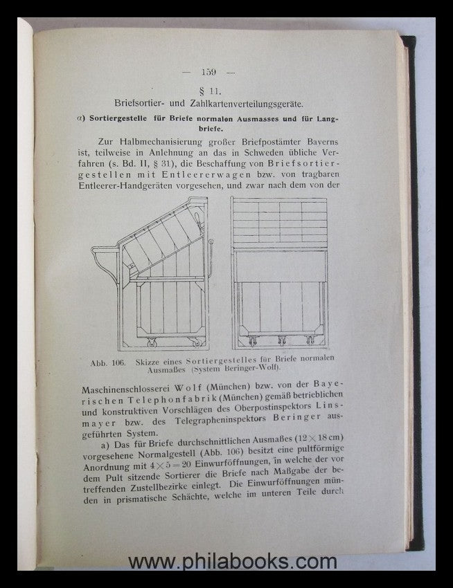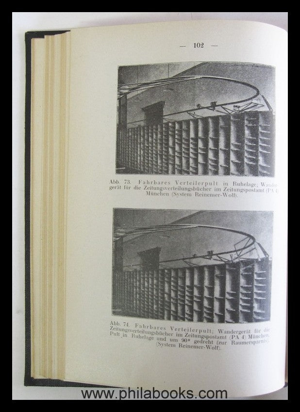 Schwaighofer, Senior Government Councillor Prof.-Ing. Hans, Munich, Postal Operation Mechanics (The conveying system in modern postal operations in larger cities) in 2 volumes, here the only interesting volume II with the mechanization examples from the postal practice of the German Reichspost. A. Ziemsen Verlag/ Wittenberg, Bz. Halle, 1927, interesting documentation about the mechanization/early postal automation, including in the Residenz and central letter post office in Munich, in the parcel post office in Nuremberg and using various other examples from the entire Reichspost area and some European cities. 438 pages with 275 photos/illustrations. Illustrative work about the daily mail delivery at the Reichspost around 1925, slight signs of age and use. #43972