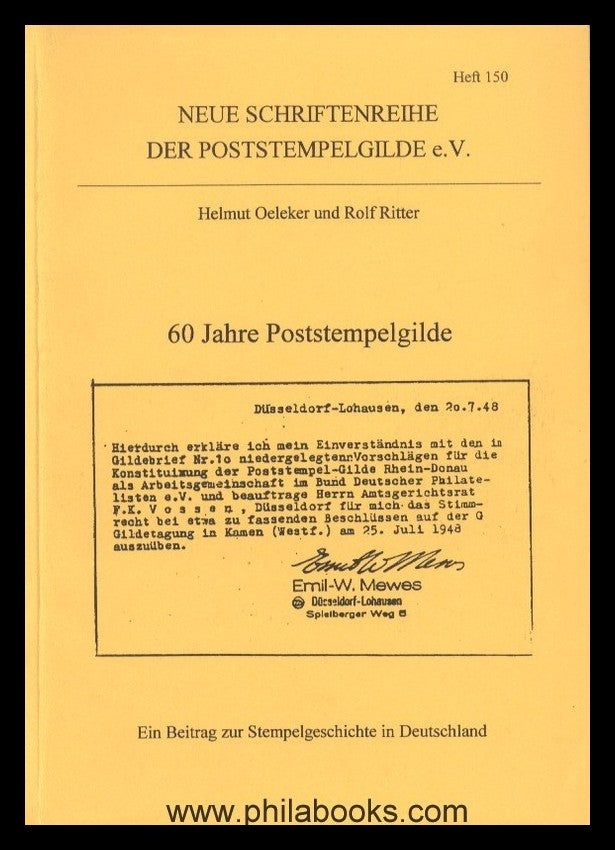POSTSTEMPELGILDE, Oeleker/ Ritter, 60 years of the Poststempelgilde, New series of publications of the Poststempelgilde eV, Issue 150, 1998, 138 pages, including a treatise on the history of the 'guild' and biographies of employees with photos #44234