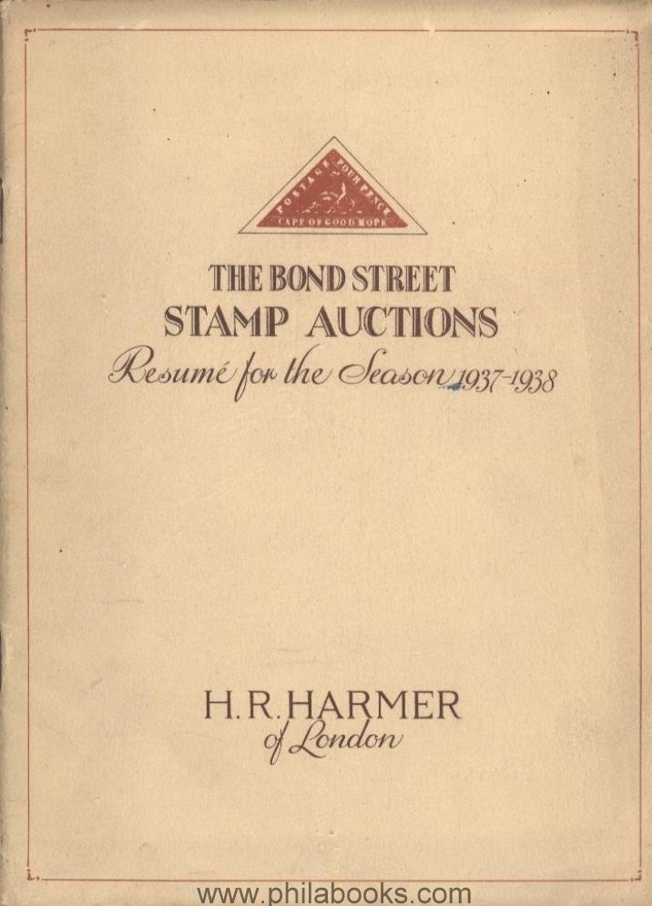 HRHarmer, The Bond Street Stamp Auctions, Resumé for the Season 1937-1938, report on the auctions at Harmer in the 1937-38 season, with images and results of the most interesting offers, slight signs of age, rare. Darin de Worms Ceylon (with image from the BBC radio broadcast), 2 P. Post Office Mauritius, Private Treaty Sale 3 Skill. Sweden misprint. #47552