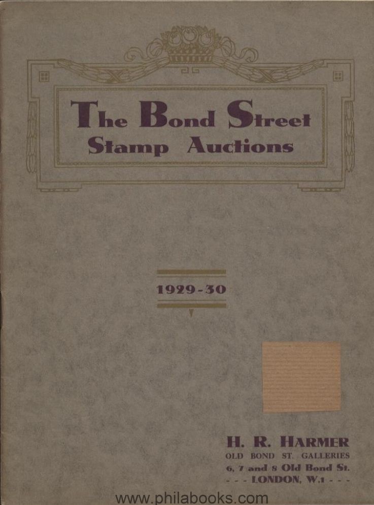 HRHarmer, The Bond Street Stamp Auctions, 1929-1930, report on the auctions at Harmer in the 1929-30 season, with illustrations and results of the most interesting offers, 32 pages, binding slightly glued and slightly browned at the edges, otherwise in good condition, rare. Including British Guiana, Cape of Good Hope and Japan 1872 500 M. unused sheet part with 30 pieces. #47555
