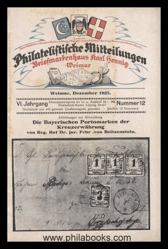 Hennig Philatelic Bulletins, VI. Jg., 1925, Issue 12, including Birnbach Hannover Part II, 'The 5 Mark stamp with the princely group of the Reichspost' (without author mention) and 'Foreign stamps on Brunswick stamps and Brunswick stamps on foreign stamps' by W. Schrader, each with illustration, the cover slightly stained, otherwise good #47778