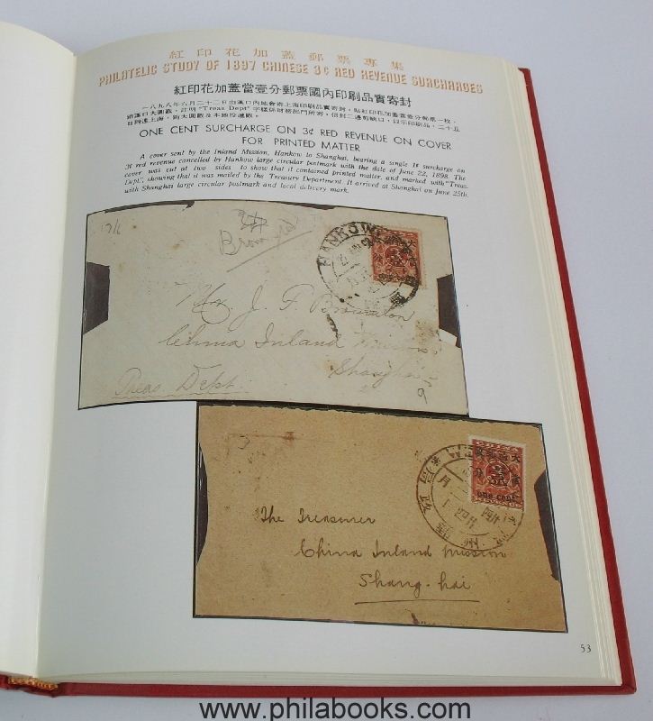 Directorate General Posts Ministry of Communications Republic of China (ed.): The Revenue Surcharges China 1897, (VOL I.) 1984, color catalog of the stamps and postmarks with many illustrations, including numerous rarities, 317 pages, published on the occasion of the inauguration of the new postal museum in Taipei with the participation of collectors from home and abroad who have made their collections available for this purpose. Very beautiful and important reference catalog in imitation leather, excellent condition in the original cardboard slipcase (this one has minor signs of wear). #49117