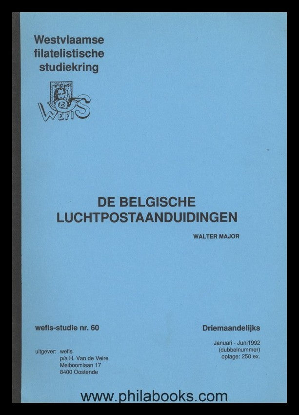 Major, W.:De Belgische Luchtpostaanduidingen, No.60, 1992, 59 p., Study on Belgian airmail stamps and airmail stickers in Flemish, with illustrations, freshly printed #50067