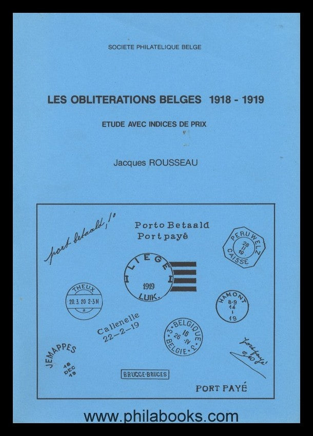 Rousseau, Jaques: Les Obliterations Belges 1918-1919, Etude Avec Indices de Prix, 1982, catalog of Belgian stamps after the German occupation in World War I, 156 pages, with illustrations, with evaluations, place names and a comparison sheet for stamps, #50606