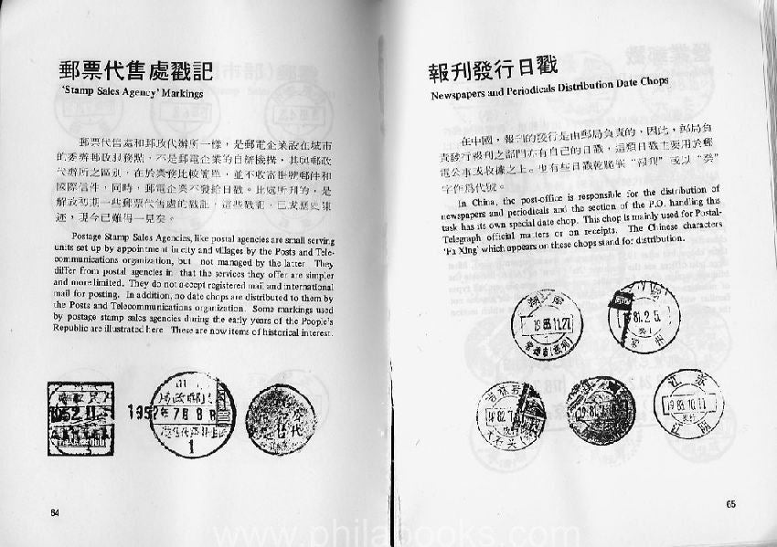 Tong, Chu, The Postal Markings of PRC, Philatelic Publications Ltd., Hong Kong, 1984, overview of the types of stamps of the People's Republic of China with explanations of the intended use, bilingual Chinese/English, 231 pages, many stamp images, low wear. #52448