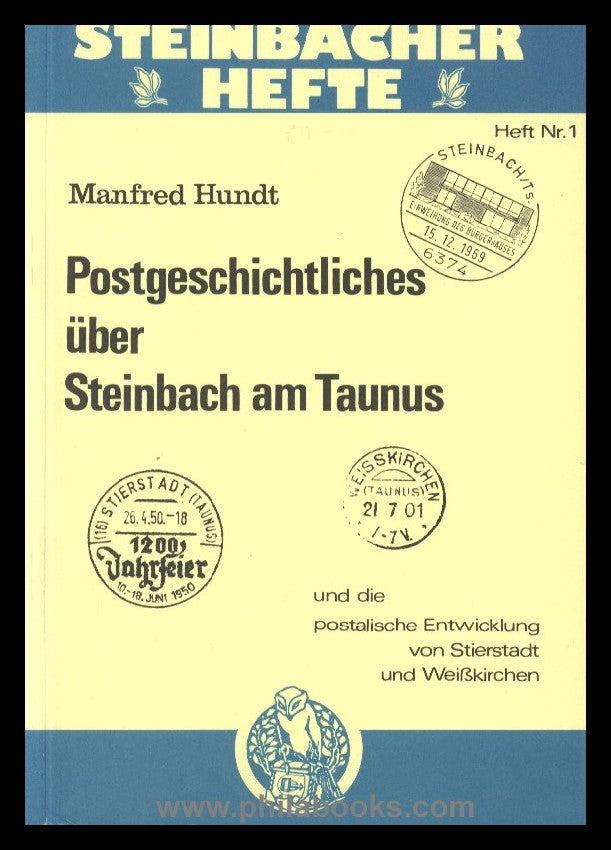 STEINBACH AM TAUNUS, Hundt, Manfred: Postal history of STEINBACH AM TAUNUS and the development of Stierstadt and Weißkirchen, Steinbacher Hefte, Issue No. 1, 1974, 79 p. #52645