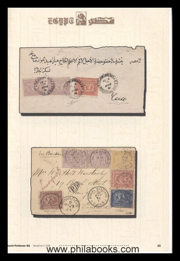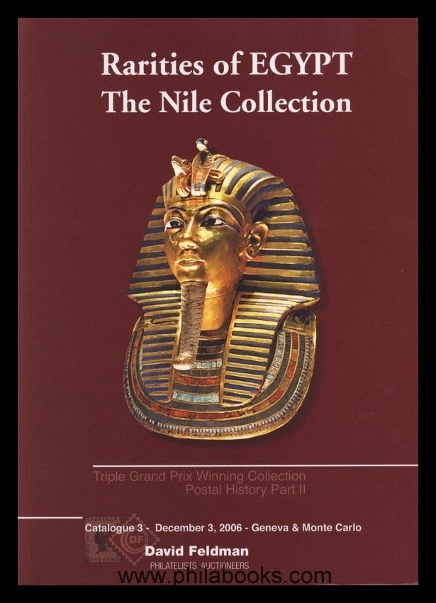Feldman, David, Rarities of Egypt, The Nile Collection, Triple Grand Prix Winning Collection, Postal History, Part II, 03.12.2006, 99 pp., color catalog with gold edges, numerous illustrations, good EX. #55829
