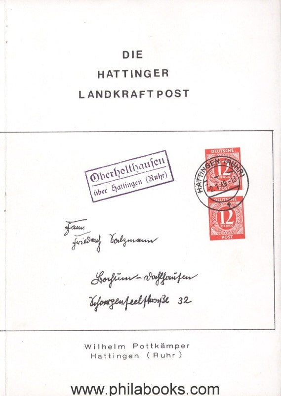 HATTINGEN, Pottkämper, W., Die Hattinger Landkraftpost, 1992, Catalog of rural postmarks, 168 pages, with many illustrations #55928