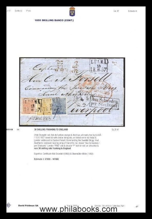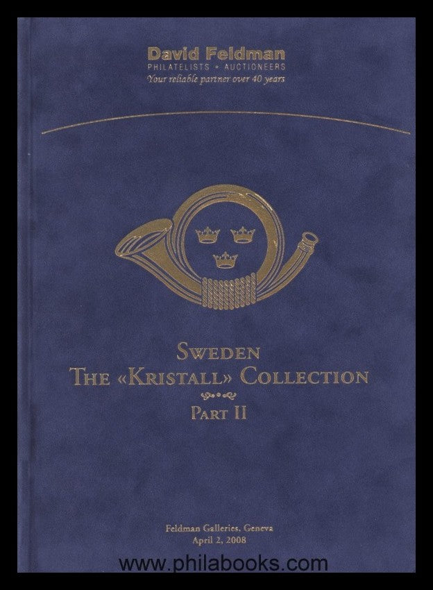 David Feldman, Sweden The 'Kristall' Collection, Part II, Geneva, 02.04.2008, luxury catalogue in velvet and with gold edges, 139 pages, with numerous illustrations, Ingvar Pettersson Collection, postal history and rare stamps of Sweden, fresh from the press #57717