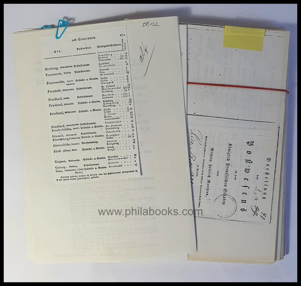 Matthias, Wilhelm Heinrich: Representation of the postal system in the Royal Prussian States, 1817, in 3 volumes, here only volume 3 as an unbound COPY, in it the sought-after list of all Prussian post offices as well as the index for volumes 1 and 2, 313 pages, #58152