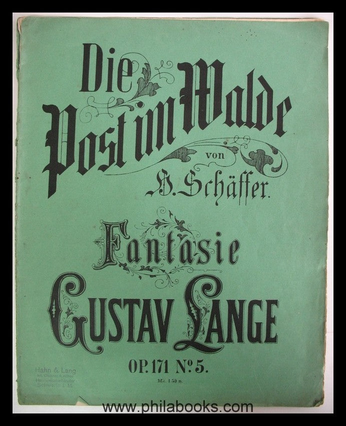 Schäffer, H., Die Post im Walde, Fantasy Gustav Lange, Op. 171 No. 5, piano sheet music, n.d. (ca. 1902), 12 pp., cover loose, signed. Court music dealer Hahn & Lang, Schwerin i. M. #59838