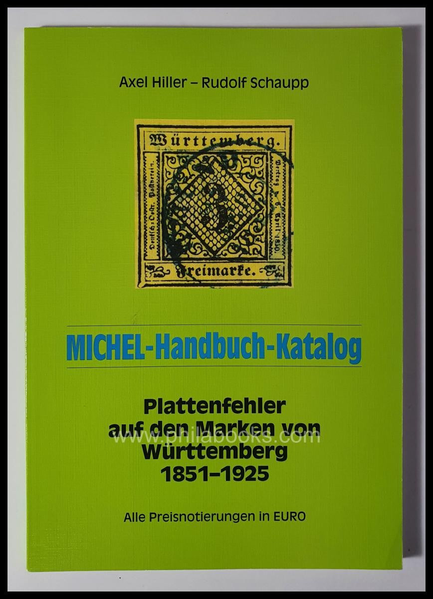 Hiller/ Schaupp, Michel-Handbuch-Katalog Plate Errors on the Stamps of Württemberg 1851-1925, 2001. 125 pages with 218 color detail enlargements and with evaluations, here is a freshly printed copy #60513