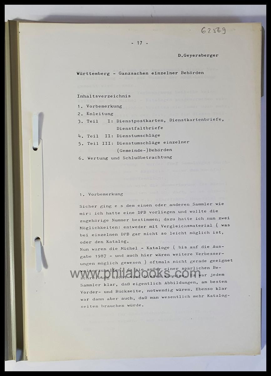 Geyersberger, D., Württemberg - Postal stationery of individual authorities, n.d. (ca. 1980), ca. 250 pp., in a loose-leaf binder #62569