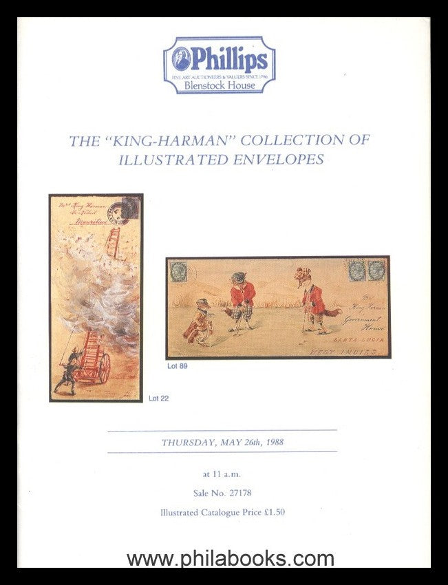 Phillips, London, The 'King-Harman' Collection of Illustrated Envelopes, 26.05.1988, 107 lots, 34 pages, with illustrations, including from Great Britain, India etc., with EL #63566