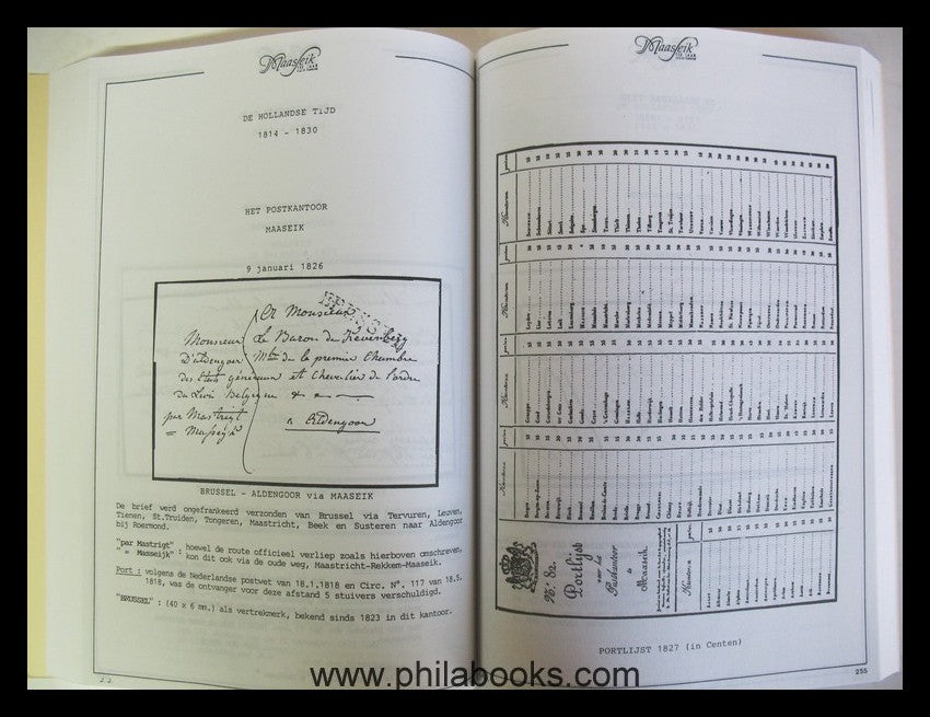 De Malpos Filatelistenverenigung Maaseik (ed.), De Postgeschiedenis van Maaseik, 1994, compilation from the collections of the members, including Leo de Clercq, James van der Linden, 439 pages, of which about 60% from the pre-philatelic area of all periods, all items described in detail in Flemish, very well preserved #63836