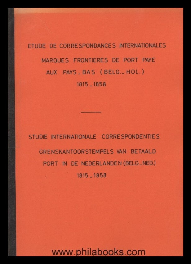 Delbeke, C., Study Internationale Correspondenties, Grenskantoorstempels van Betaald Port in de Nederlanden (Belg.-ned.) 1815-1858 and Etude de Correspondances Internationales, Marques Frontieres de Port Paye Aux Pays-Bas (Belg.-Hol.) 1815-1858, ca 1990, paperback collection copy, text in French. #63914