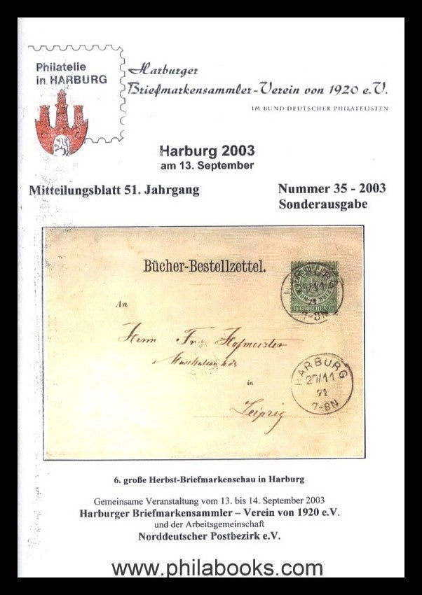 Harburger Briefmarkensammler-Verein von 1920 eV, newsletter no. 35/2003, special edition for the 6th big autumn stamp show in Harburg from 13-14.09.2003 with the ArGe NDP, 66 pages, with illustrations, including numerous postal history articles on the NDP collecting area #64170