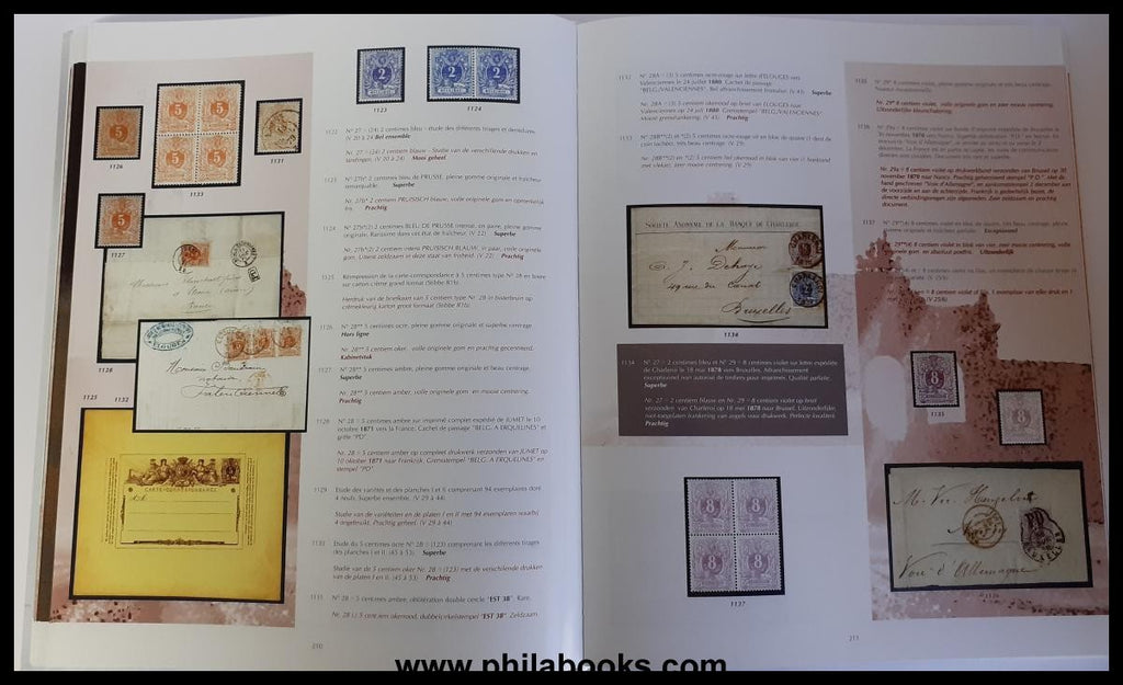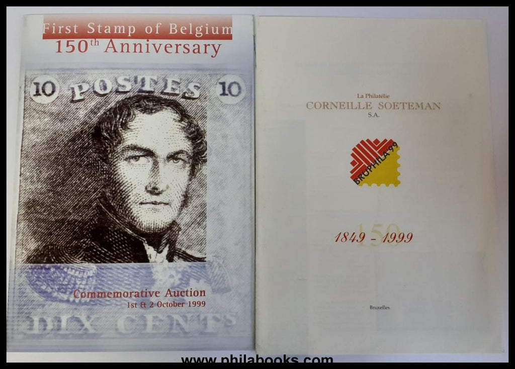 Corneille Soeteman, Commemorative Auction 01..-02.10.1999, First Stamp of Belgium, 150th Anniversary, lavish luxury catalogue in slipcase, 2184 lots, 434 pages, with countless colour illustrations, with EL, very interesting, handbook-like auction catalogue, not common, well preserved, ex Amplatz #65154