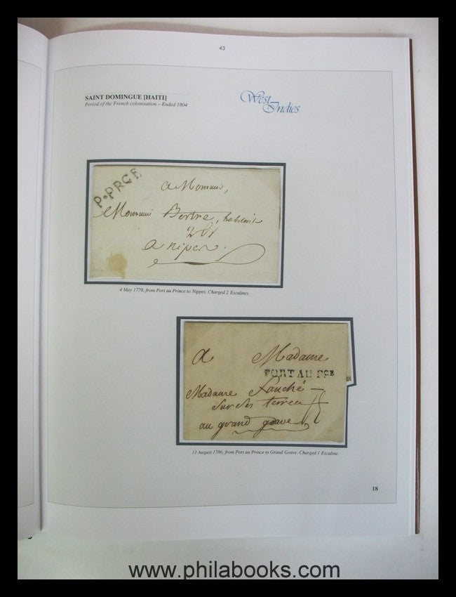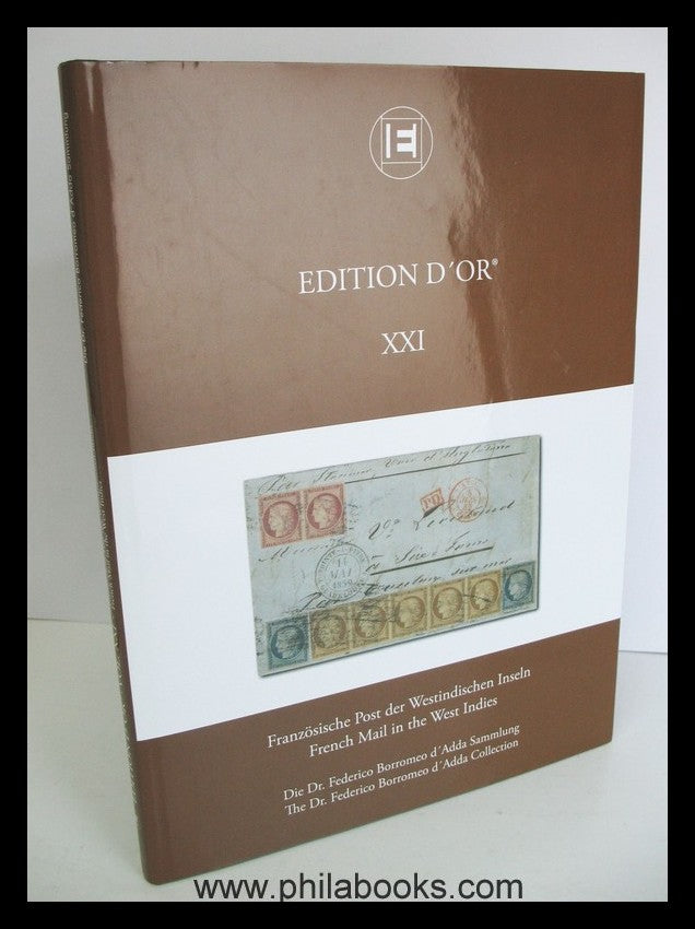 Heinrich Köhler/ Corinphila (ed.), EDITION D'OR XXI, French Mail in the West Indies, The Dr. Federico Borromeo d'Adda Collection/ French Mail in the West Indies, The Dr. Federico Borromeo d'Adda Collection, 2010, dust jacket with slight signs of wear, otherwise very well preserved. Volume 21 of the illustrated book series of gold medal collections published by the Heinrich Köhler auction house, Wiesbaden, hardcover, large format, color, 187 pages, freshly printed, in original packaging. The collection consists predominantly of documents, including French transatlantic mail from Guadeloupe, Martinique, Haiti and from the French foreign post offices in the Caribbean, including military mail and French/English accounting stamps for mail from St. Lucia, Trindidad, Cuba, etc., English description. #65324