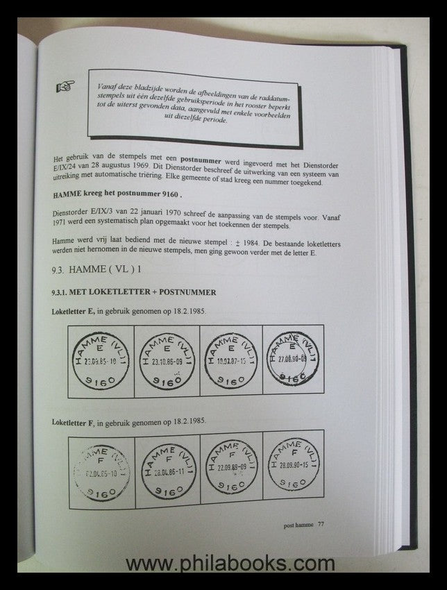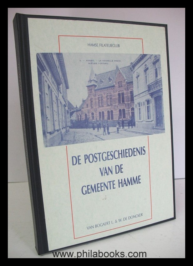 van Bogaert, L./ de Doncker, W., De Postgeschiedenis van de Gemeente Hamme, Hamse Filatelistclub, 1998, 143 pp., with illustrations, here an excellent private copy bound in blue imitation leather with embossed spine, original cover page professionally glued on, very well preserved, signed by van Bogaert, ex Han Vermeulen. #65662