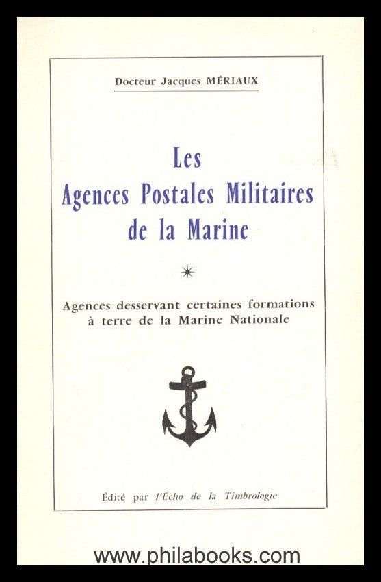 Mériaux, Docteur Jacques: Les Agences Postales Militaires de la Marine, L'Écho de la Timbrologie No. 7, 1967, copy 164/500, 32 pages, with illustration #65783