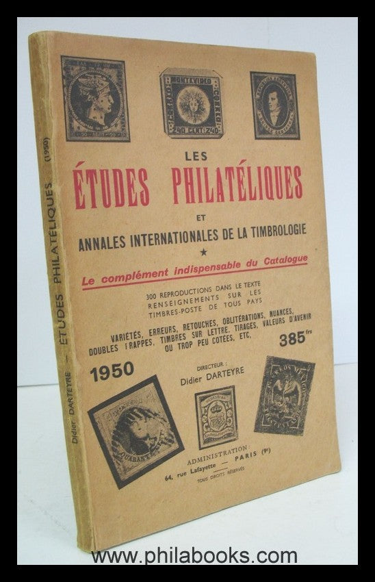 Les Études Philatéliques et Annales Internationales de la Timbrologie, 1950, Didier Dartere, Paris, 202 pp., with illustrations, including interesting articles on the classic issues of Europe, as well as of Brazil, Venezuela, etc. #65849