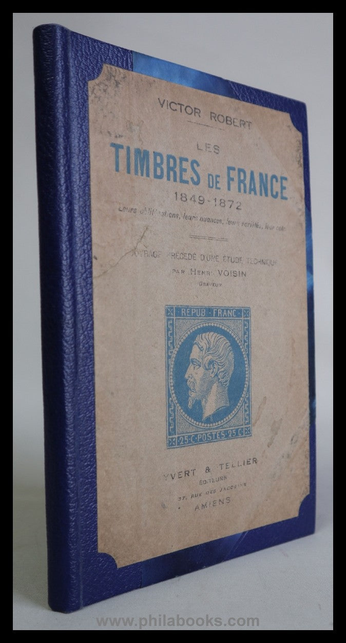 Robert, V., Les Timbres de France 1849-1872, Leurs Oblitérations, leurs Nuances, leurs Varietés, leur Cote, Yvert & Tellier, Amiens, ca 1950, 151 pp., with illustrations, attractively bound in blue half-leather, with book corners, the original cover page professionally glued on, minor signs of wear, well preserved #66647