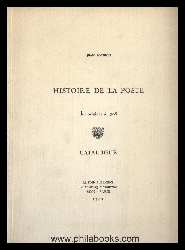 Pothion, J., Histoire de la Poste des Origines à 1703, 1983, 52 pp., with illustrations and some map drawings #67329