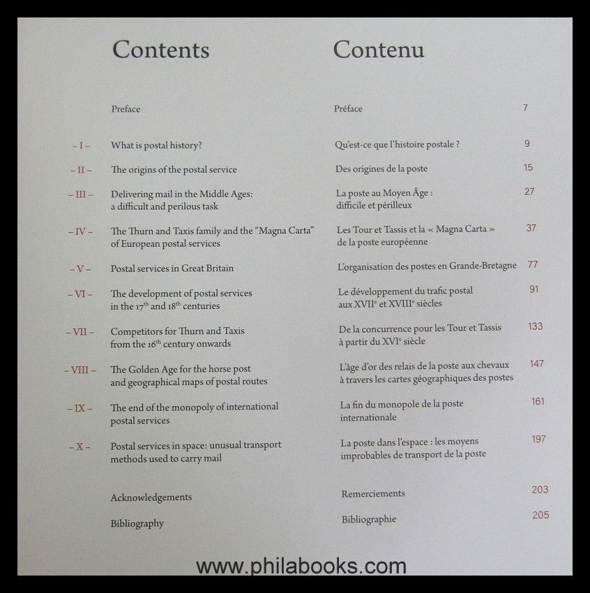 Schouberechts, V., The Post Book, 500 years of history in Europe/ La Poste, 500 ans d'histoire en Europe, 2016, History of the post office from its beginnings to the Universal Postal Union based on numerous original documents, 206 pages, with many colored illustrations, text in French and English, hardcover, the cover shows slight signs of wear, otherwise in very good condition #67340