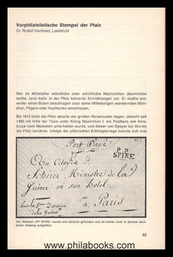 Hanfland, Dr. R., Pre-philatelic stamps of the Palatinate, around 1975, tear-out approx. 4 pages, with illustrations, privately bound #67495