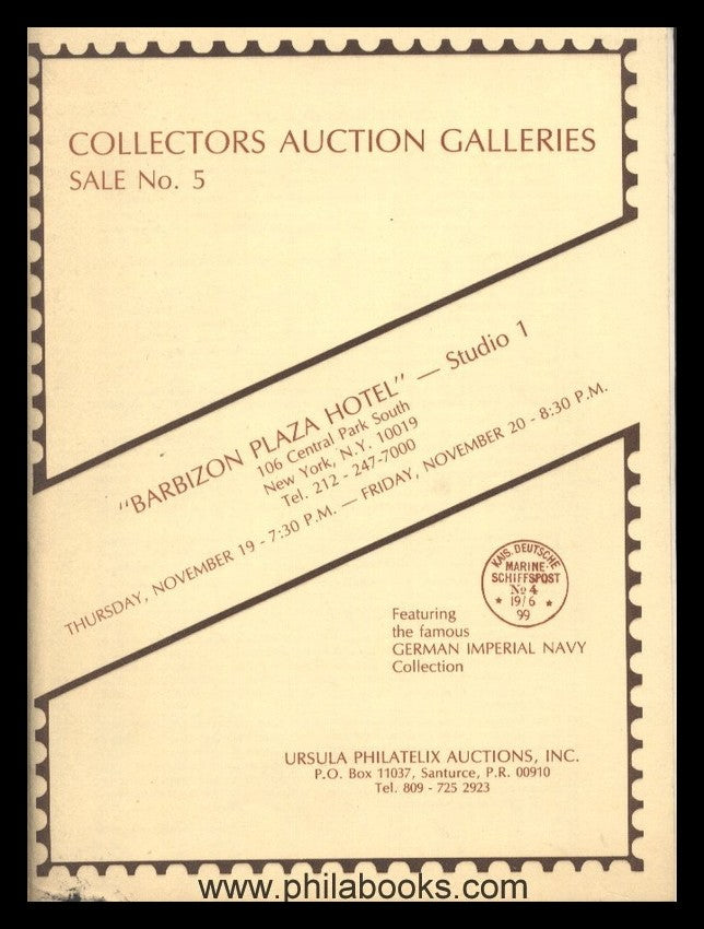Ursula Philatelix Auctions, Collectors Auction Galleries, Santurce, PR, USA, Sale No. 5 19./20.11.81, Featuring the famous German Imperial Navy Collection, 70 pp., with illustrations, including a large selection of German naval ship mail with illustrations, a catalog from Puerto Rico that many German collectors are surely missing #67623