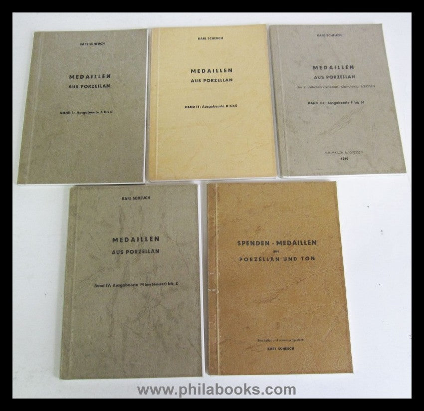 Scheuch, K., Medallien aus Porzellan Volume 1-4 AZ complete, plus the special volume Donation Medallien aus Porzellan und Clay, pages partly loose (weak binding), otherwise good, rarely offered complete #67843