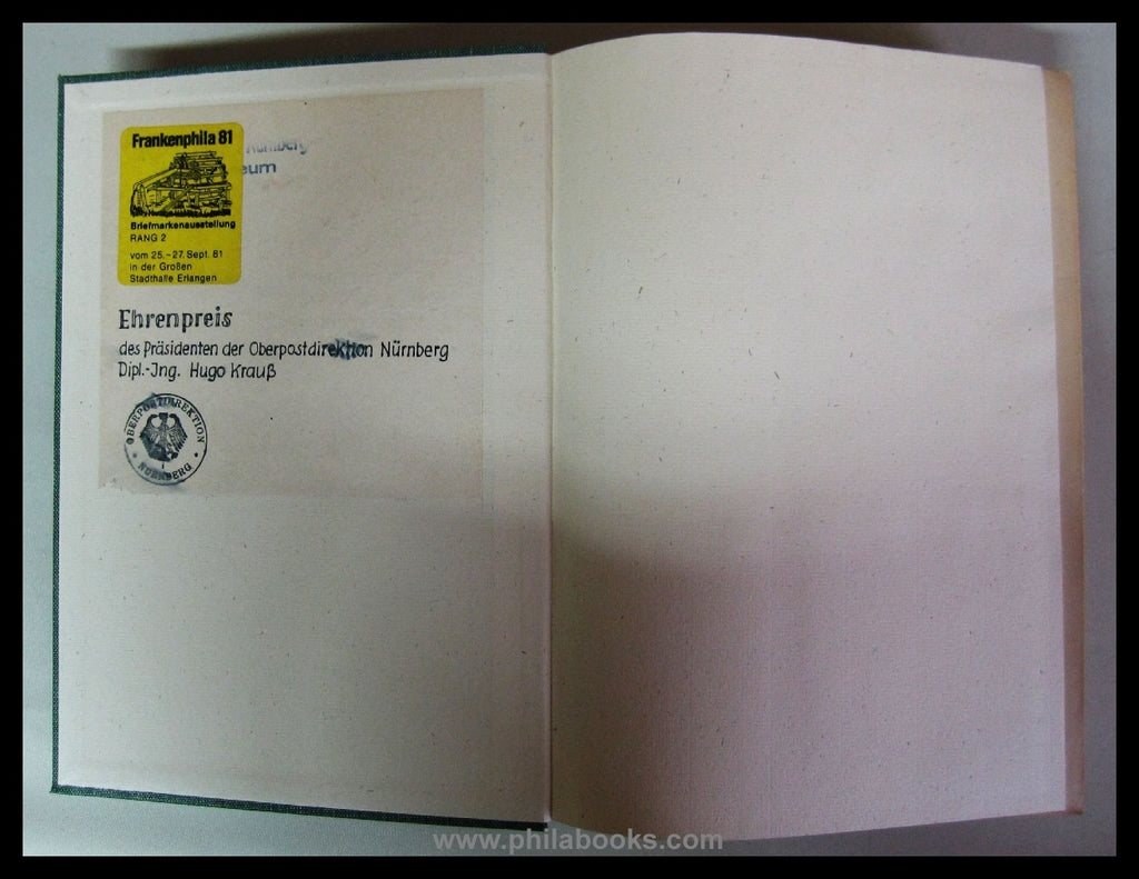 K. Bayer. Posten und Telegraphen (ed.), Postal Lexicon for the Kingdom of Bavaria, Munich 1905, local directory with information on the delivery post office and the offices, this copy ex OPD Nuremberg Postal Museum and awarded as an honorary prize at the 'Frankenphila 1981' (glue-in), linen, 1003 pages, stained on the sides, otherwise in good condition #69191